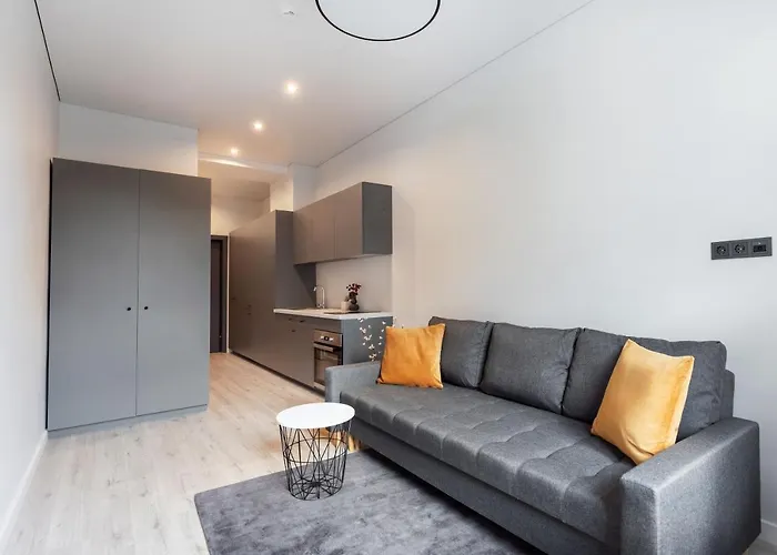Ces appartements Youston propose des options indépendantes telles qu'une bouilloire électrique, un réfrigérateur et un four pour votre plaisir. L'aéroport international de Vilnius est à une distance de 7 minutes en voiture, et l'arrêt de bus Naujamiestis est à quelques instants de cet appartement Youston.